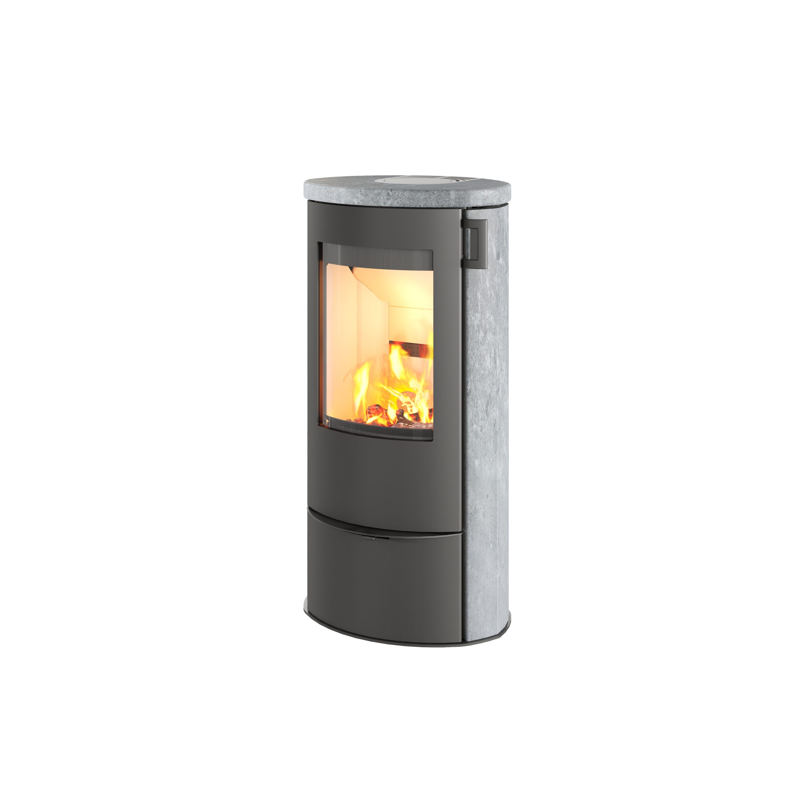 En klassisk brændeovn fra LOTUS. Serien er kendt for sit tidløse design og praktiske funktioner såsom et opbevaringsrum under brændkammeret.