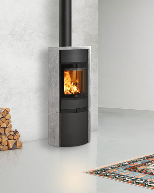 TT23RG fra TermaTech kombinerer skandinavisk elegance med funktionel pålidelighed. Den store, buede front og de to sideruder sikrer et klart kig til flammerne, der skaber en varm atmosfære, som kan nydes fra forskellige vinkler i rummet.